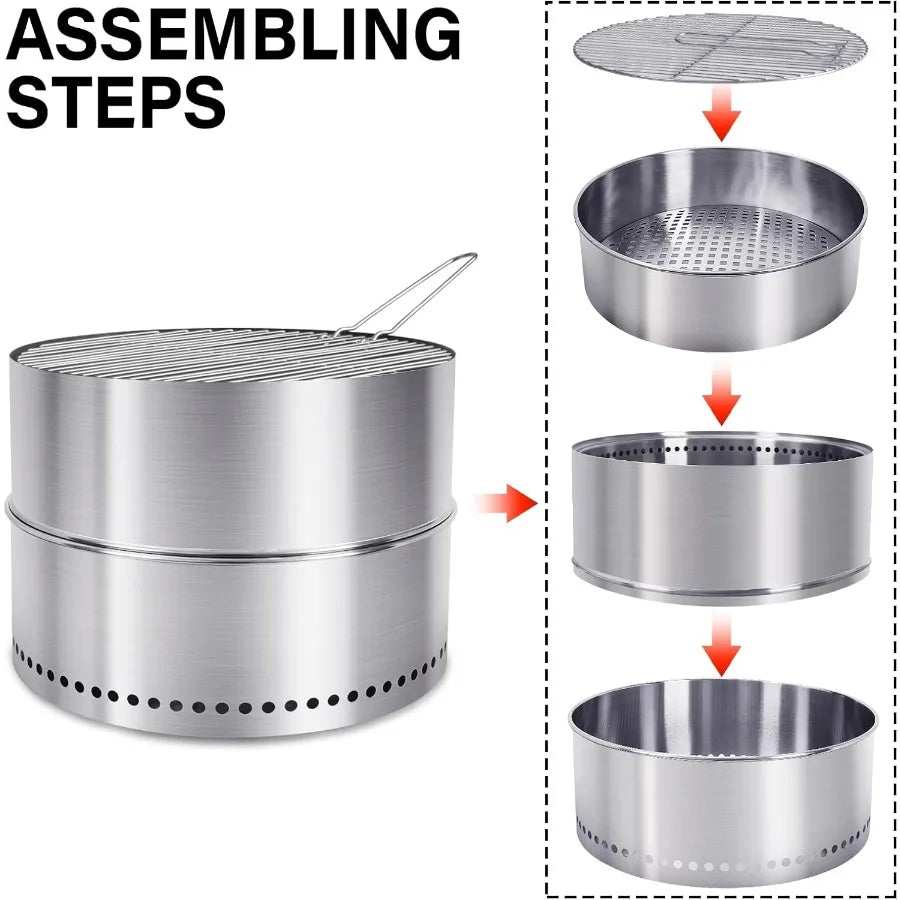 Smokeless Firepit With Grill Portable Wood Burning Outdoor Fire Pit