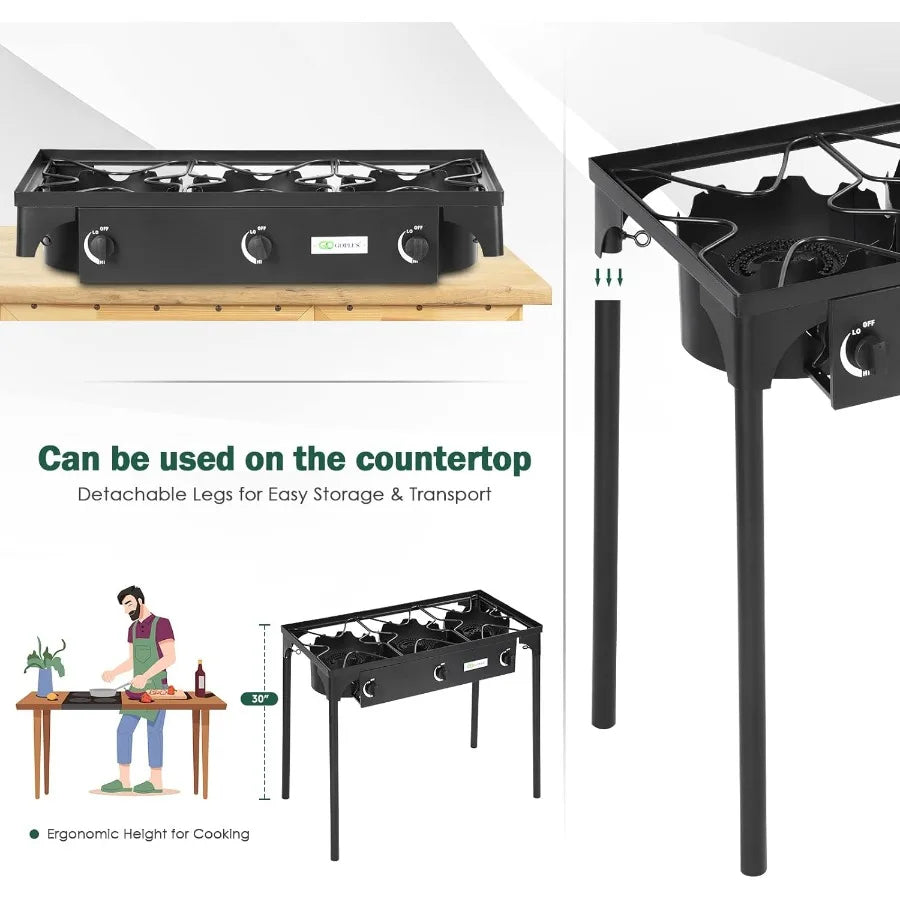 Outdoor Camping Stove 3 Burner Propane Cooker With CSA Regulator
